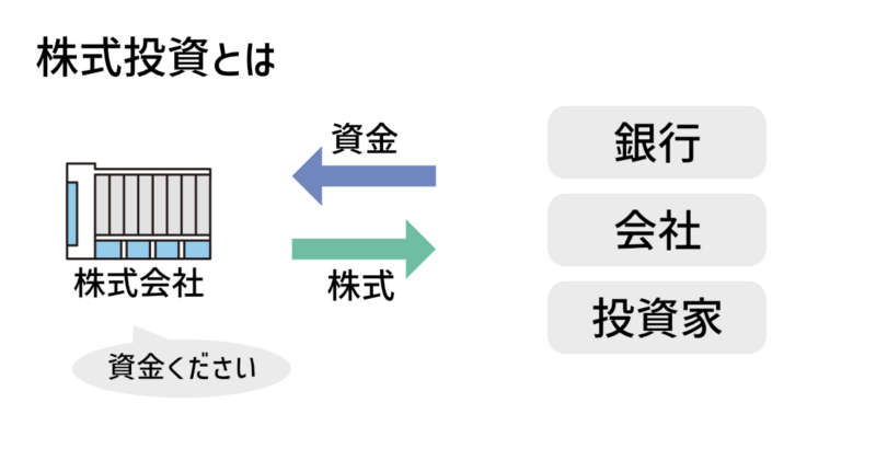 そもそも株式投資とは、株式会社が発行する株式を購入し、その株の価値が上がることに投資する行為のことです。