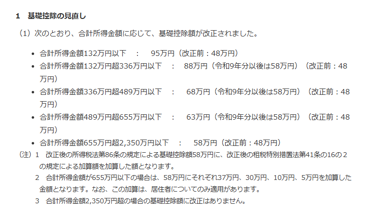 そして現在では基礎控除が一律48万円だったのが令和7年度・8年度は暫定的な対応として合計所得132万円以下は95万円まで引き上げられました!!これはデカイ