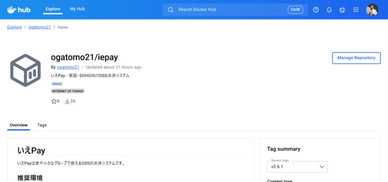これによりどんなPCからでも docker pull ogatomo21/iepay:v2.6.1 をするだけでいえPayの環境構築ができます。需要は自分以外たぶんない。