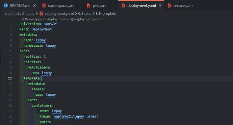 namespaceを作ってPVCを作ってDeploymentを作ってServiceを作って...