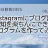 夏休み毎日投稿2025のすべての記事は下記から閲覧いただけます。
