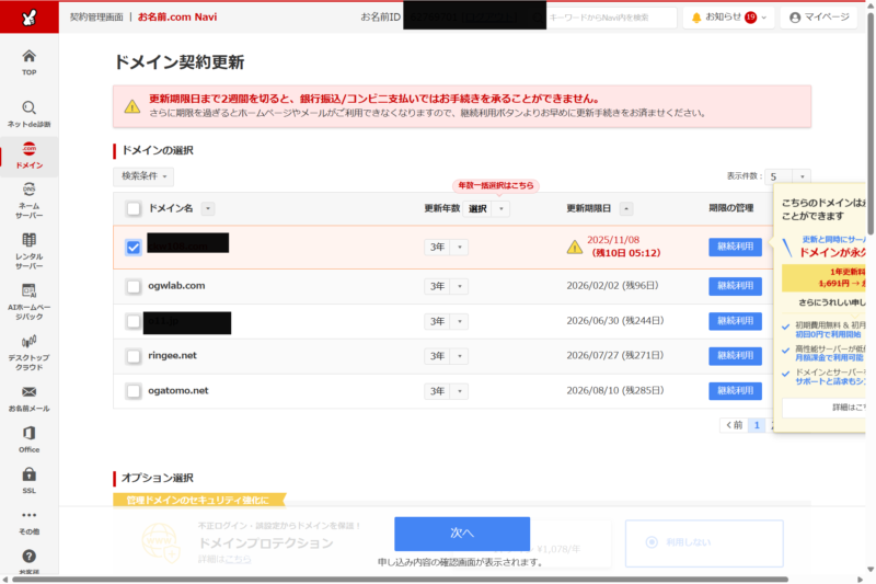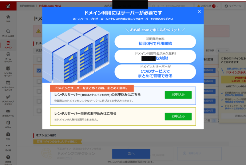 お名前.comの罠 その3. ワンクリック詐欺を彷彿とさせる管理画面