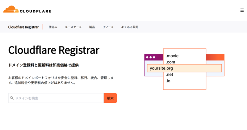 さて、ようやく本日の主役「Cloudflare Domains」の登場です。