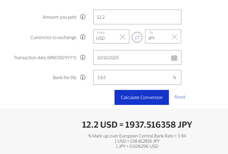- Visa "Exchange Rate Calculator" https://usa.visa.com/support/consumer/travel-support/exchange-rate-calculator.html