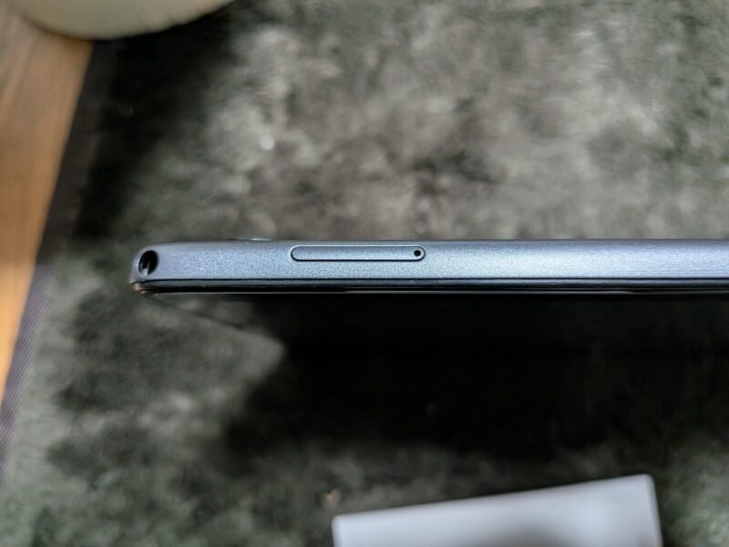 上側面には左からイヤホンジャック、SIM・microSDスロットがあります。