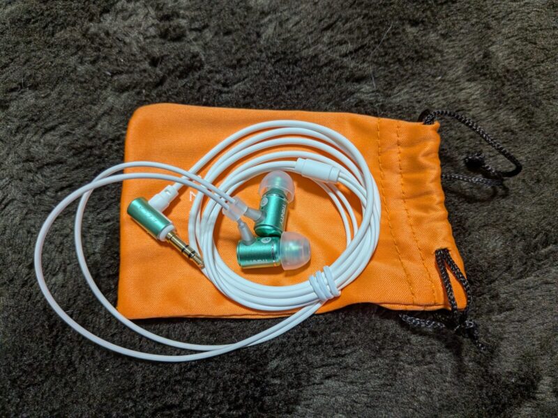 最初に紹介したように、このイヤホンには収納袋が付属しているのですが、使っているとオレンジ色のカスがポロポロと出てきてイヤーピースについたりするので、ちょっとなぁ⋯という感じでした。