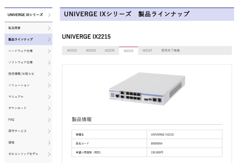 UNIVERGE IX2215は、NECが発売していた「UNIVERGE IXシリーズ」の法人向けVPNルーターで、最大2Gbpsのスループットや、MAP-E・DS-LiteなどのIPoEに対応していること、また法人向けならではの安定性や柔軟性が特徴です。